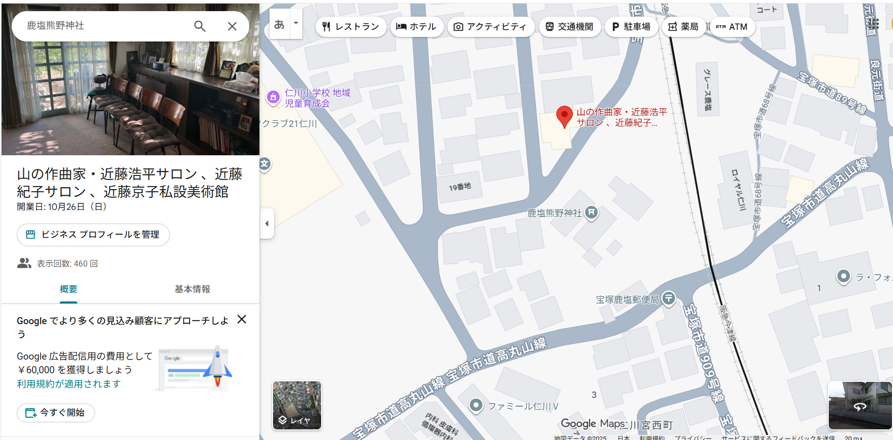 アクセス(GoogleMap)(兵庫県宝塚市仁川台3)