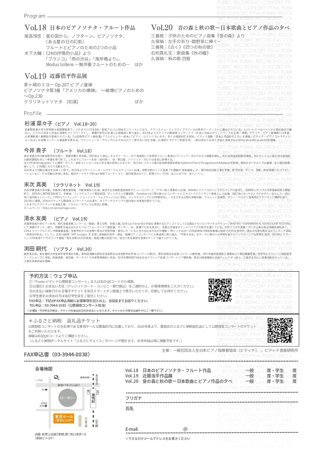 2026年6月5日(金)19時開演 東京 巣鴨 ピティナ 東音ホール ピティナ・公開録音コンサート「日本人作品の夕べ」(演奏・企画:杉浦菜々子)